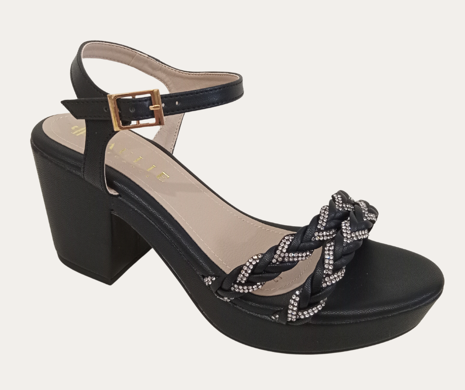DH6 PV26 SANDALIA DE ENTRADA TACON 8CM ANCHO CUADRADO CON PLATAFORMA HEBILLA CIRCULAR CON PIEDRERIA MARCA PAULIE ESTILO 5444PA