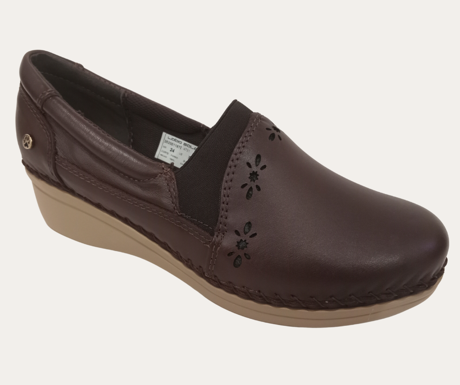 DZ4 OI25 ZAPATO SLIP ON DE CONFORT CUÑA 4CM CORTE LASER CON PATRONES FLORALES CIERRE LATERAL 100%PIEL MARCA LOBO SOLO ESTILO 4732LO