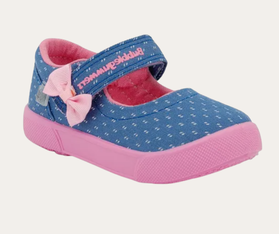 AZ OI25 ZAPATO CORREA CON VELCRO Y MOÑO AL LADO CORTE TEXTIL MARCA BUBBLE GUMMERS ESTILO HADAI