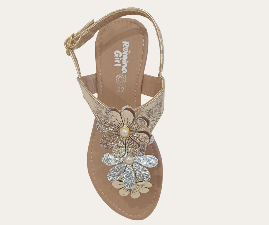 DHP PV26 SANDALIA PATA DE GALLO FLORES EN EMPEINE CON PERLAS CORREA CON HEBILLA TACON 2CM MARCA ROMINA GIRL BY GILAND ESTILO 01ROMI