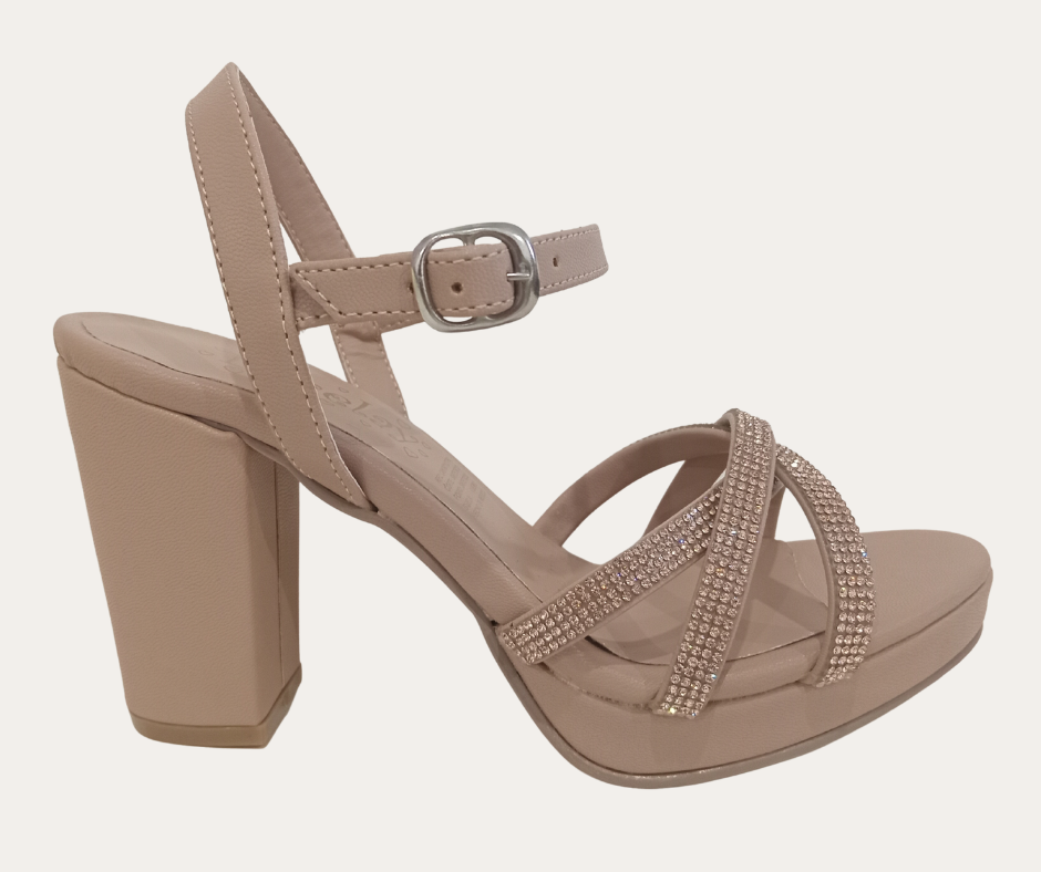 DH0 PV26 SANDALIA DE TACON GRUESO 9CM CON PLATAFORMA TIRAS FRONTALES CRUZADAS CON BRILLANTES CORREA CON HEBILLA MARCA LORELAY - GILAND ESTILO 1001LO