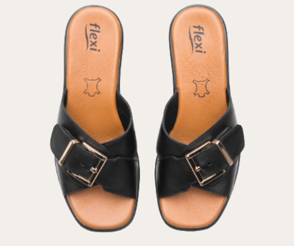DH6 PV25 SANDALIA TACON MEDIO CUADRADO 8CM TIRAS CRUZADAS CON HEBILLA GRANDE DE ENTRADA MARCA FLEXI ESTILO 133501
