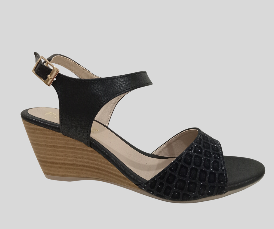 DH6 PV24 SANDALIA CON HEBILLA CUÑA 7CM TIRA ANCHA PRINT CON BRILLOS MARCA PAULIE - ESTILO 2074PA