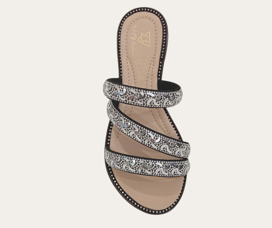 DHP PV26 SANDALIA ENTRADA TRES TIRAS DECORADAS CON PIEDRERIA MARCA BEVY FASHION ESTILO 357BEV