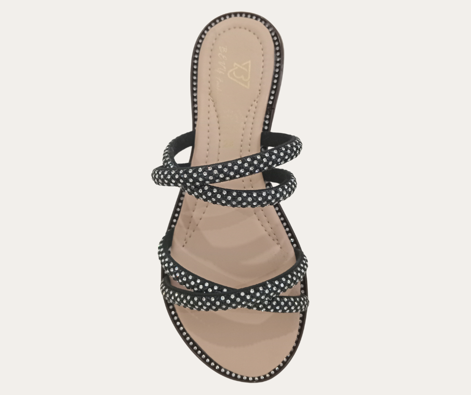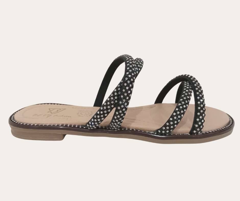 DHP PV26 SANDALIA DE ENTRADA TIRAS CRUZADAS CON PIEDRAS ESTOPEROLES PLATEADOS EN EL CONTORNO DE LA SUELA MARCA BEVY FASHION ESTILO 359BEV