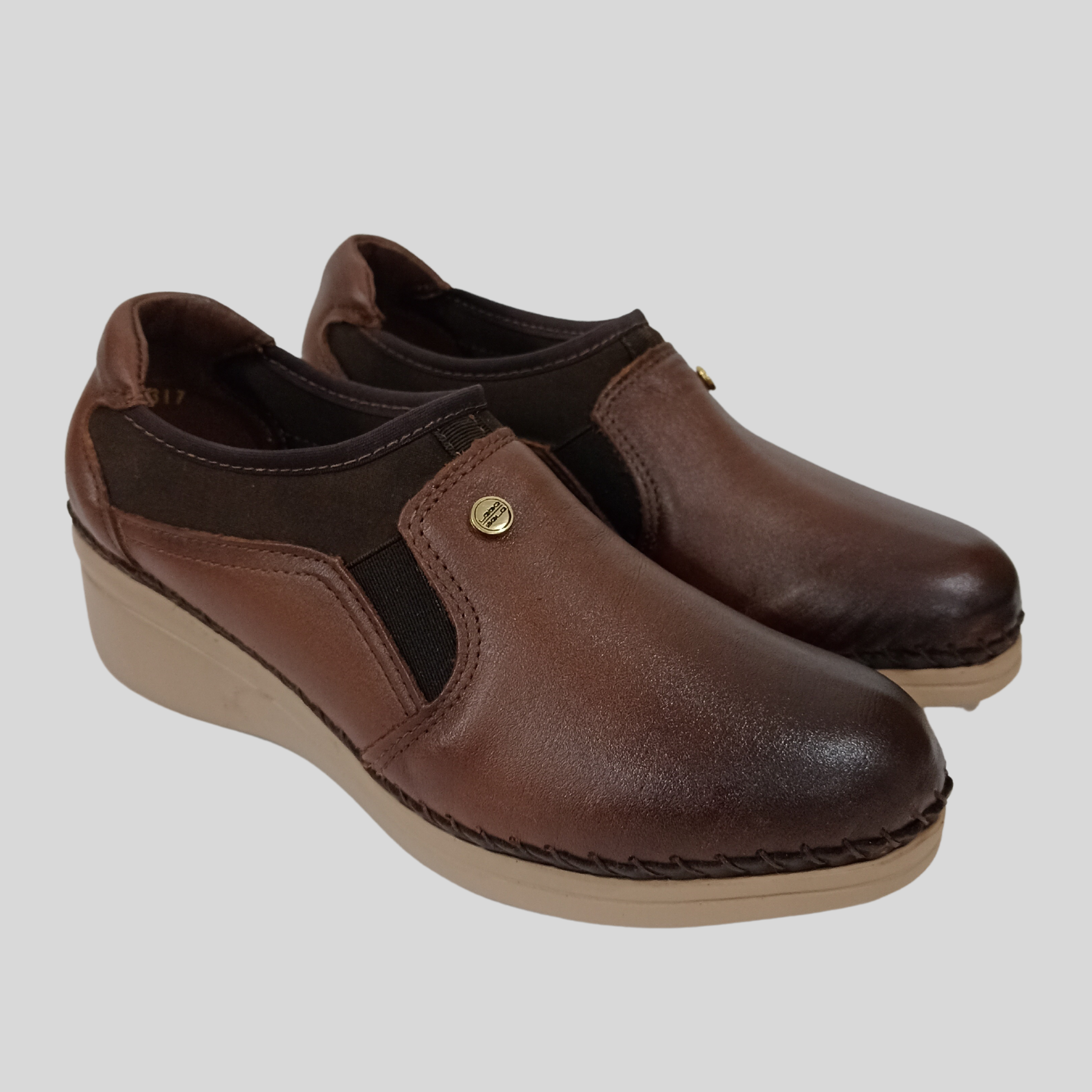 DZ6 OI23 ZAPATO CUÑA CON LICKRA LISO 100% PIEL PARA DAMA LOBO SOLO - ESTILO 4716LO