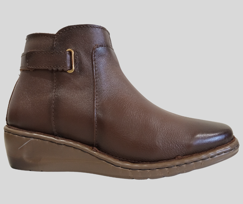 DB4S OI24 BOTA TUBO CORTO DE PIEL CON CORREA EN TUBO PARA MUJER CUÑA 4CM TEJIDO A MANO LOBO SOLO ESTILO 4842LO