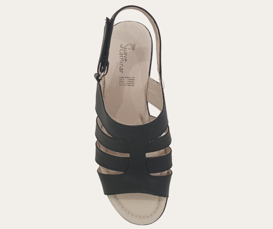 DH4 PV26 SANDALIA CORTE PIEL CORREA CON VELCRO CUÑA 4CM MARCA SUAVE CAMINAR ESTILO 5155SC
