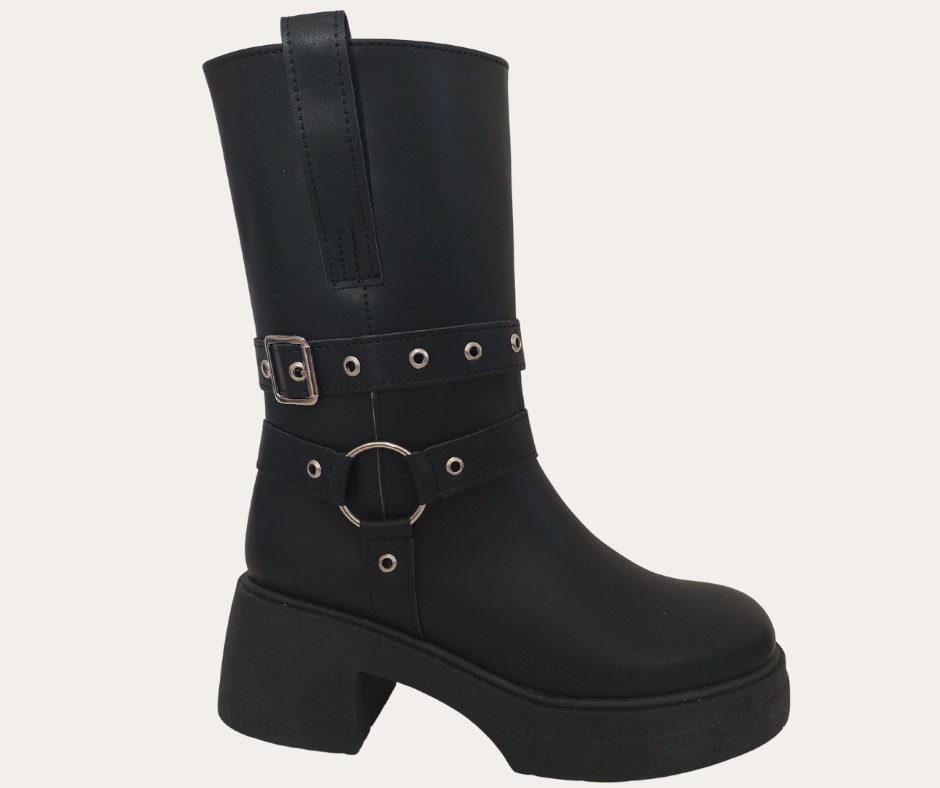 DB6S OI25 BOTA TUBO MEDIO CORREAS CON HEVILLA Y HERRAJE REDONDO SUELA TRACTOR CON TACON 6CM MARCA BEVY FASHION ESTILO 801BEV