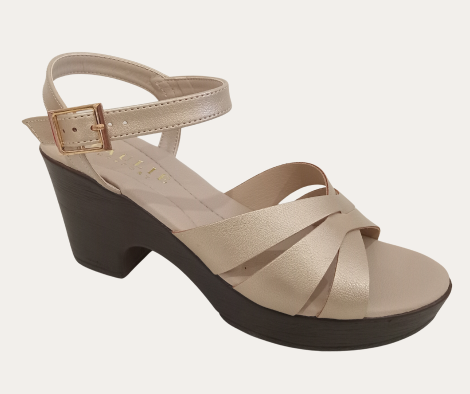 DH6 PV26 SANDALIA TACON GRUESO 8CM TIPO MADERA TIRAS DELGADAS ENTRELAZADAS CORREA CON HEBILLA MARCA PAULIE ESTILO 3031PA