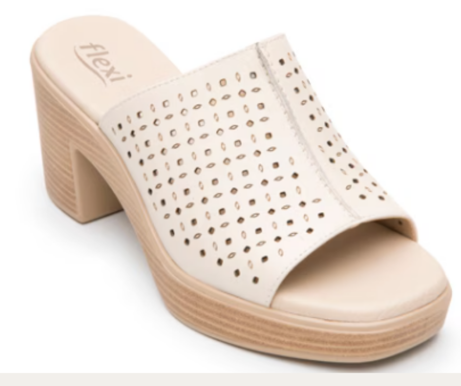 DH6 PV26 SANDALIA DE ENTRADA TACON 7CM CORTE TIRA ANCHA PERFORACION LASER 100% PIEL MARCA FLEXI ESTILO 133506
