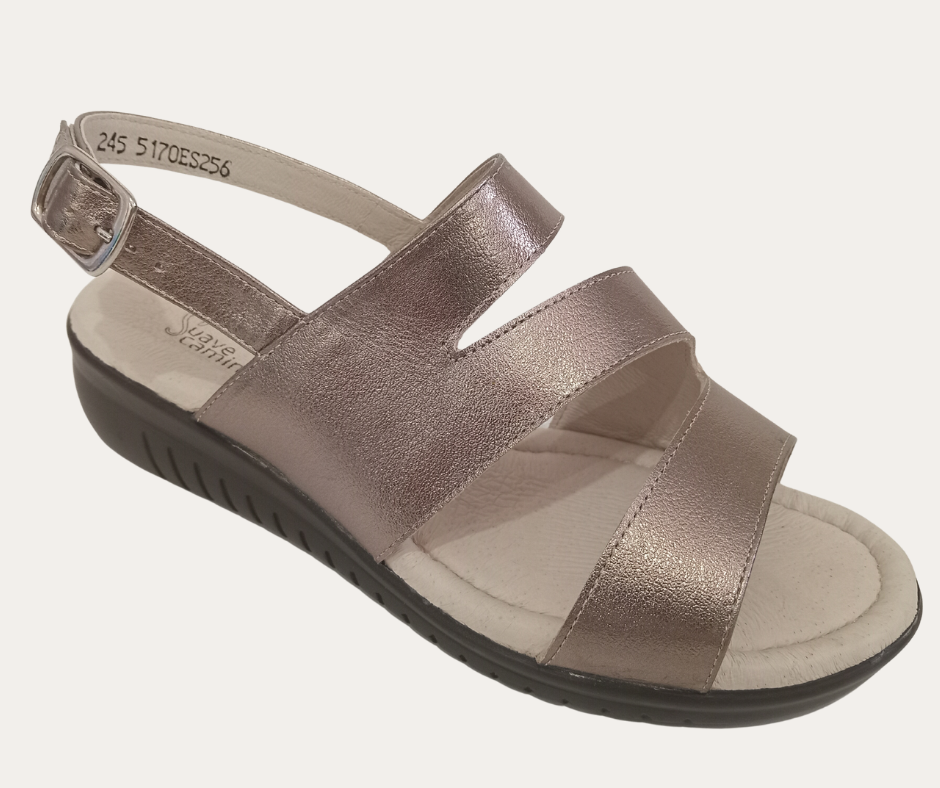 DH4 PV26 SANDALIA CORTE DE PIEL CORREA CON HEBILLA CUÑA 4CM MARCA SUAVE CAMINAR ESTILO 5170SC