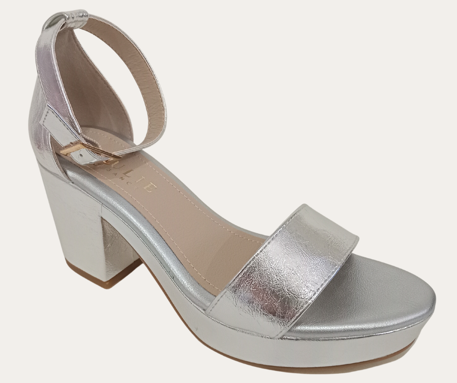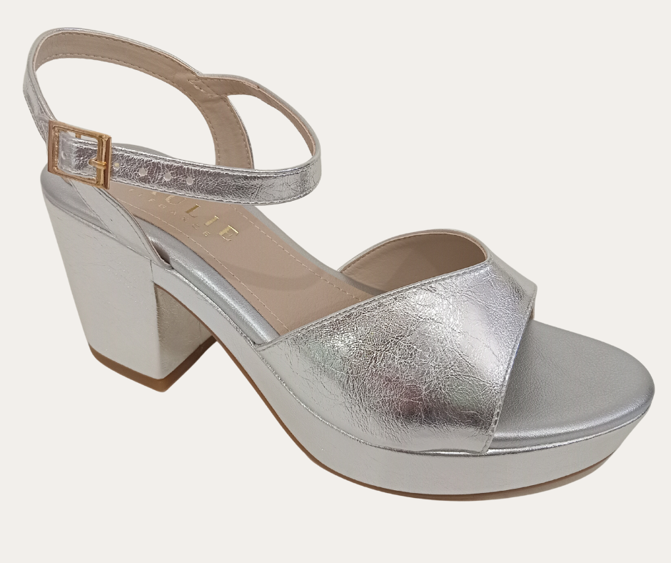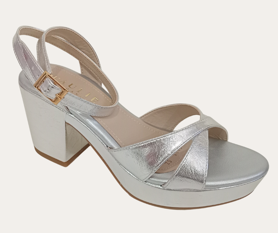 DH6 PV26 SANDALIA TACON 8CM CON PLATAFORMA BANDA ANCHA SOBRE EL EMPEINE CORREA CON HEBILLA ACABADO METALIZADO MARCA PAULIE ESTILO 5450PA