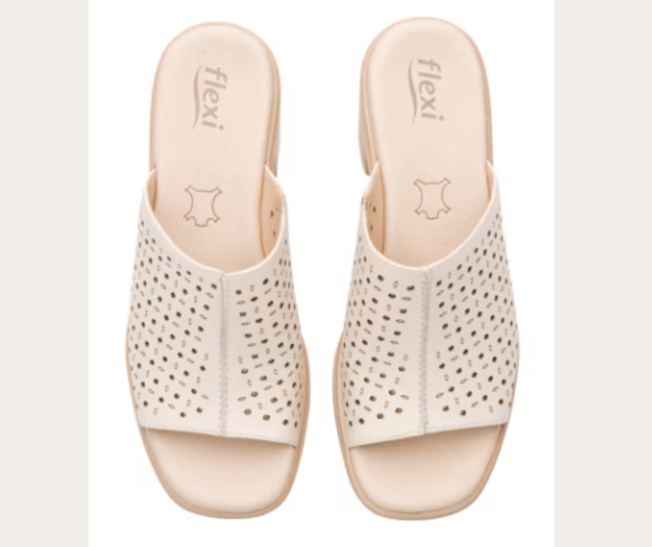 DH6 PV26 SANDALIA DE ENTRADA TACON 7CM CORTE TIRA ANCHA PERFORACION LASER 100% PIEL MARCA FLEXI ESTILO 133506