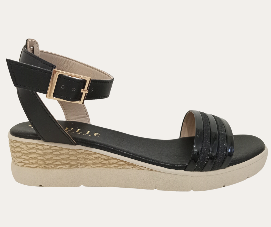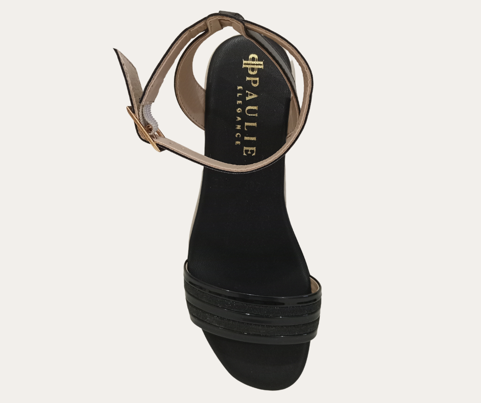 DH4 PV25 SANDALIA CON HEBILLA CUÑA 4CM TIRA GRUESA AL FRENTE CON GLITTER MARCA PAULIE ESTILO 1502PA