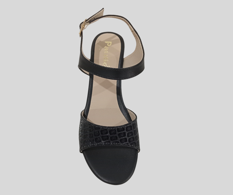 DH6 PV24 SANDALIA CON HEBILLA CUÑA 7CM TIRA ANCHA PRINT CON BRILLOS MARCA PAULIE - ESTILO 2074PA