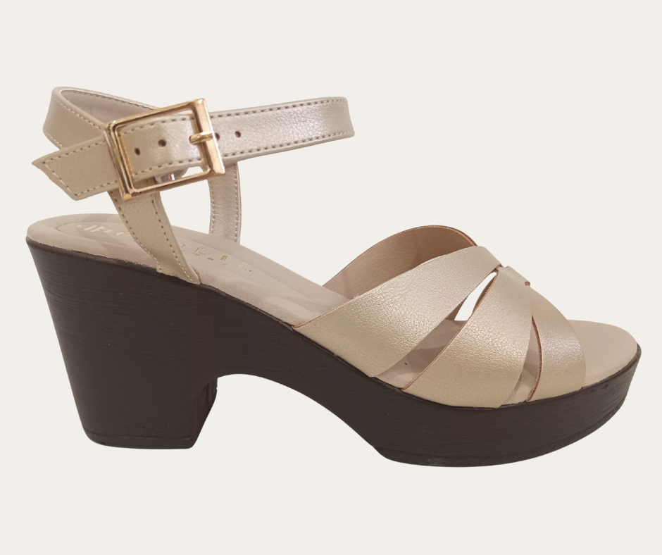 DH6 PV26 SANDALIA TACON GRUESO 8CM TIPO MADERA TIRAS DELGADAS ENTRELAZADAS CORREA CON HEBILLA MARCA PAULIE ESTILO 3031PA