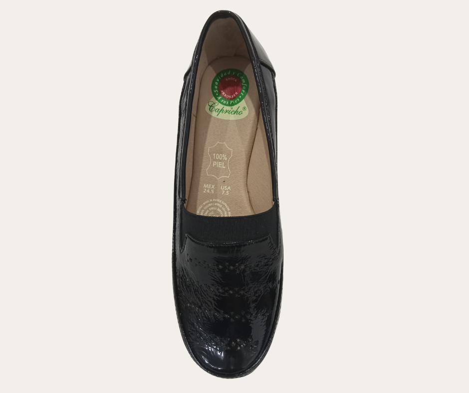 DZP OI25 ZAPATO MOCASIN DE CUÑA 3CM 100%PIEL PERFORACION EN CHINELA ELASTICO EN EL EMPEINE MARCA CAPRICHO ESTILO 324CAP