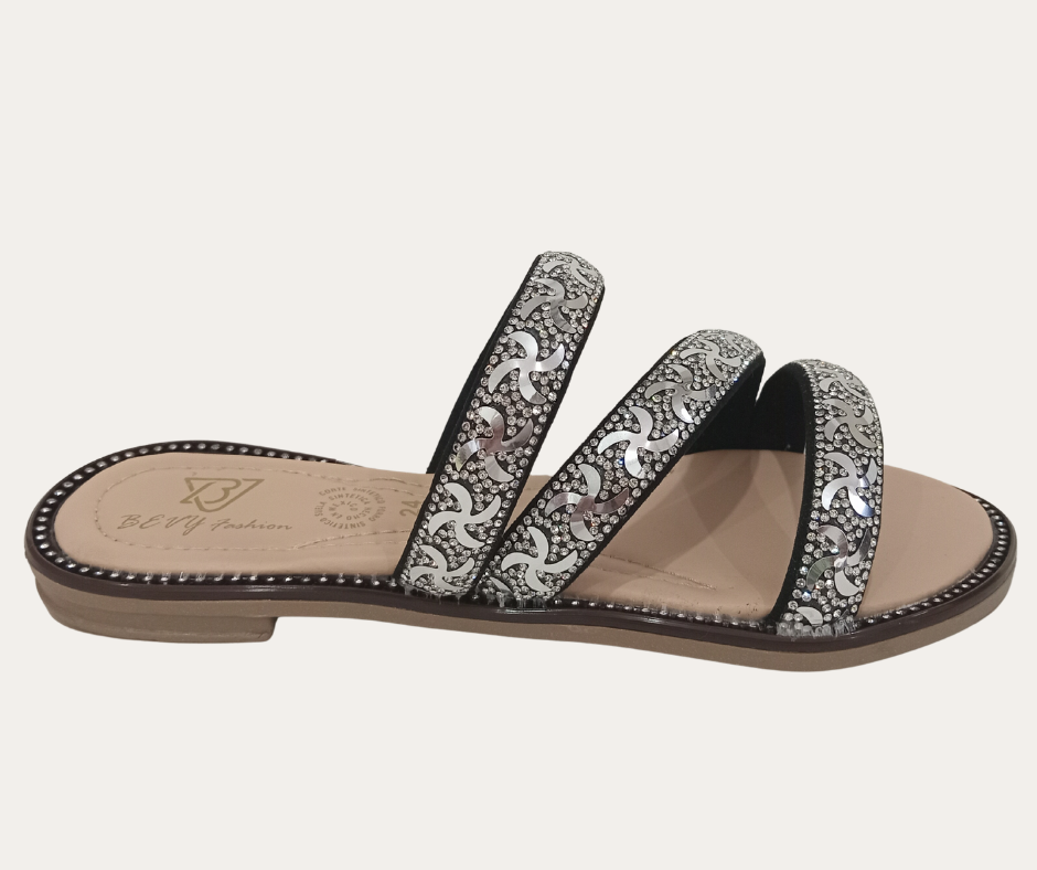 DHP PV26 SANDALIA ENTRADA TRES TIRAS DECORADAS CON PIEDRERIA MARCA BEVY FASHION ESTILO 357BEV