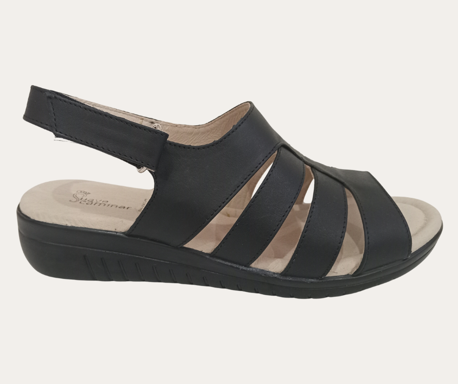 DH4 PV26 SANDALIA CORTE PIEL CORREA CON VELCRO CUÑA 4CM MARCA SUAVE CAMINAR ESTILO 5155SC
