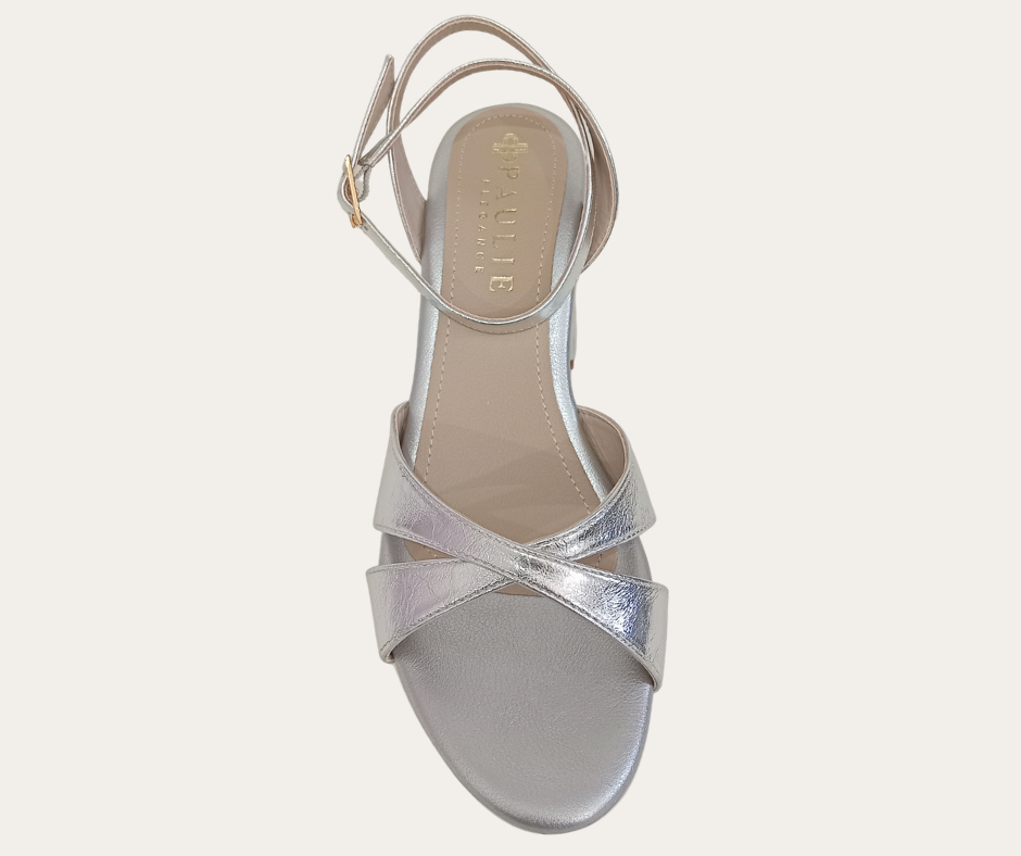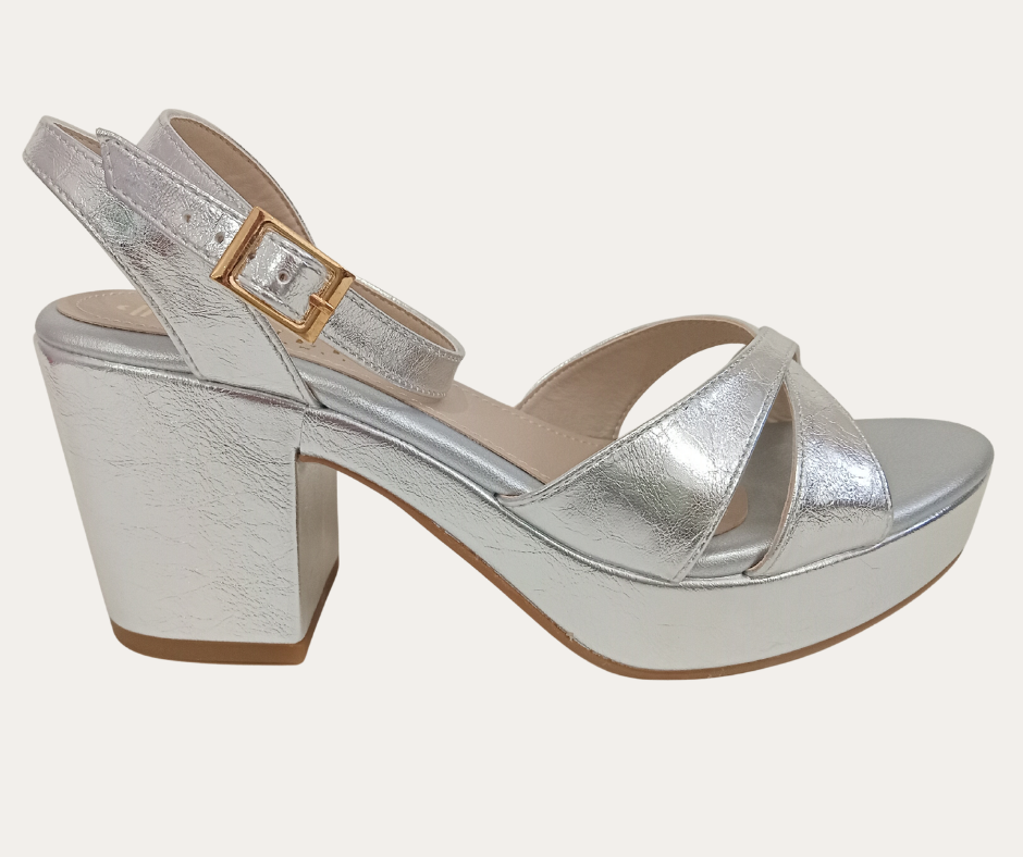 DH6 PV26 SANDALIA T8CM GRUESO CUADRADO ACABADO METALICO TIRAS CRUZADAS SOBRE EL EMPEINE CORREA AJUSTABLE EN EL TOBILLO CON HEBILLA MARCA PAULIE ESTILO 5448PA