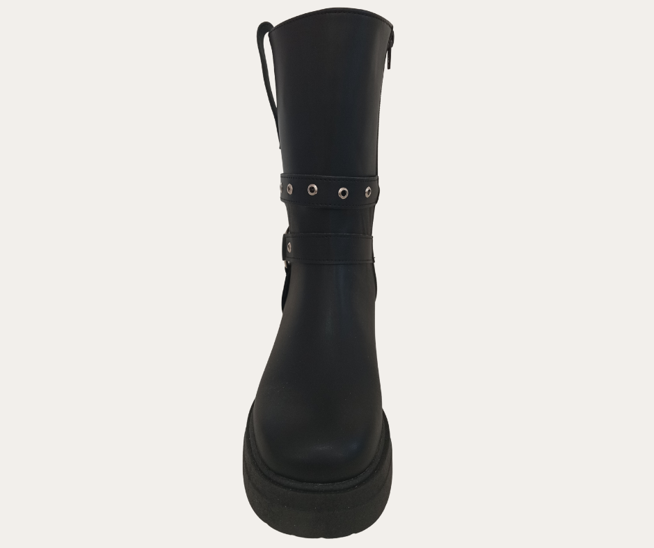 DB6S OI25 BOTA TUBO MEDIO CORREAS CON HEVILLA Y HERRAJE REDONDO SUELA TRACTOR CON TACON 6CM MARCA BEVY FASHION ESTILO 801BEV
