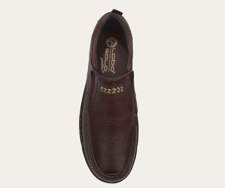 CZMS OI25 ZAPATO MOCASIN PARA CABALLERO PIEL RUGOSA COSTURA BORDADA EN EMPEINE COSTURA EN LA SUELA MARCA LOBO SOLO ESTILO 9664LO